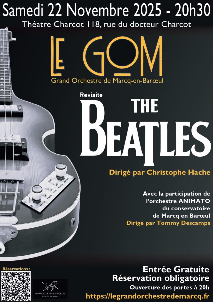 Le Grand Orchestre de Marcq vous invite à un concert exceptionnel placé sous le signe de la légende : les Beatles ! Une soirée musicale haute en couleur, où les grands classiques du mythique groupe de Liverpool seront réinterprétés en version orchestrale, avec des arrangements originaux signés Christophe Hache.